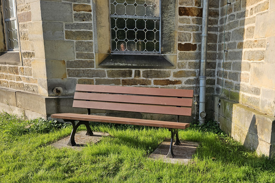 Herbert Groenke machte aus dieser „Übergangslösung“ nun eine Dauerlösung: Kurzerhand stellte er mit der Hilfe seiner Frau Ilona und Firma Holz und Dach eine Bank zusammen. Aufgestellt wurde sie mit Blick zur Straße. Einen Moment ausruhen und schauen… Danke dafür!