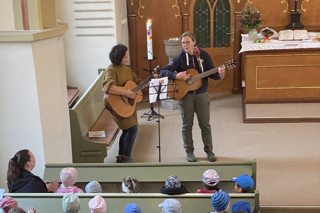 Gemeinsam wurde gesungen, gebetet und natürlich „Danke“ gesagt. Die Kinder haben zusammen mit Frau Schönfelder überlegt, wofür man alles dankbar ist und zu wem und wofür man alles „Danke“ sagen kann: