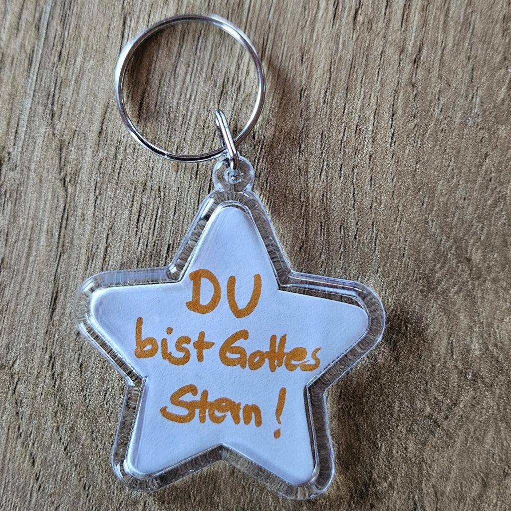 Das war die Überleitung zu dem Geschenk, das die Kita überreicht bekam: Der Erlös des Lebendigen Adventskalenders wurde in einen Sternenlichtteppich investiert, bei dem die Kinder nun unter Gottes Sternenhimmel träumen können. Als Erinnerung bekam jedes Kind einen Schlüsselanhänger mit dem Spruch: Du bist Gottes Stern! Schön, dass ihr da wart!