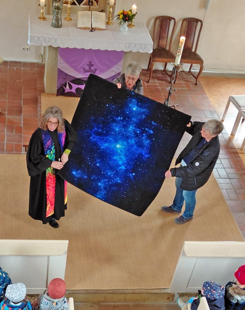 Nachdem sie die vielen Fragen zu Besonderheiten in der Kirche beantwortet hatte, erzählte Pfarrerin Tanja Klettke von Abraham und Gottes Versprechen unter dem Sternenzelt.